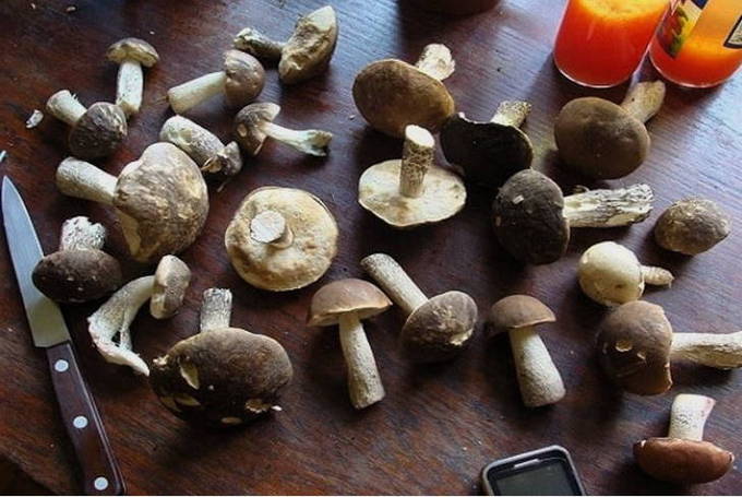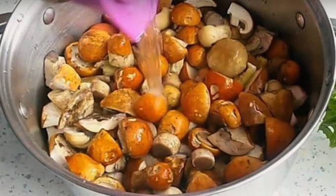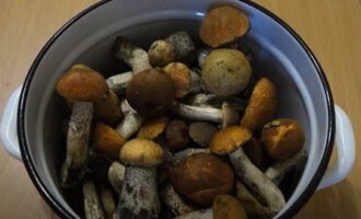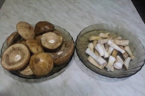 De verzamelde verse boletus moet eerst grondig worden gereinigd van vuil. Spoel de champignons daarna goed af onder stromend water.