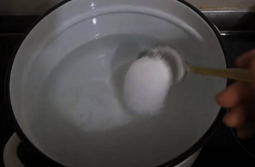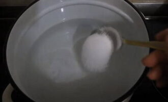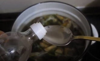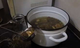 Kook in een aparte pan de marinade van de hoeveelheid water, suiker en zout die in het recept staat vermeld per 1 kg gekookte boletusboleet.
