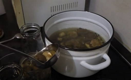 - Vul ze vervolgens met marinade en vul de potten helemaal tot bovenaan. Sluit de potten af met champignons met gekookte deksels en controleer de dichtheid van de afdichting. Laat potten met gepekelde boletus op normale huistemperatuur staan tot ze volledig zijn afgekoeld en breng ze vervolgens over naar opslag op een koude plaats.