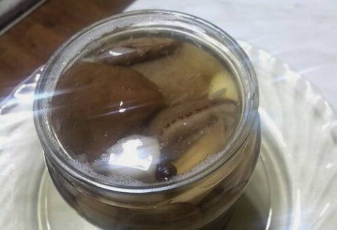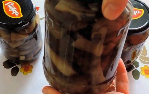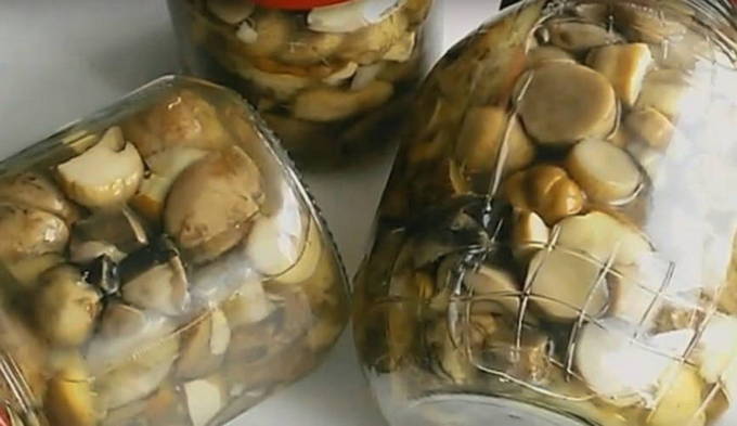 - Vervolgens verpakken we de champignons samen met de marinade in voorgesteriliseerde potten en sluiten ze goed af met gekookte deksels. We controleren de dichtheid van de naden. We laten de potten met gepekelde boletus op tafel staan totdat deze volledig is afgekoeld en zetten deze vervolgens in de koelkast voor opslag. Deze snack is maximaal 5 maanden houdbaar.