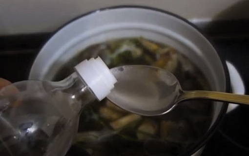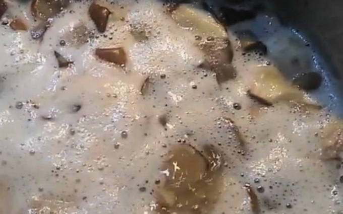 - Kook de champignons 10 minuten vanaf het begin van de kook, verwijder voorzichtig al het schuim van het oppervlak van de bouillon. Voor smaak kun je tijdens het koken een ui en champignons toevoegen, vergeet niet te roeren.