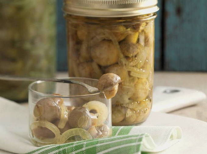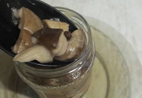 Dit recept stimuleert je om een pittige snack te maken door de hoeveelheid azijn in de marinade iets te verhogen. Dergelijke boletuszwammen zijn sterker en kunnen tot 2 jaar goed worden bewaard zonder hun smaak te verliezen. Je kunt voor deze blanco alleen paddenstoelendoppen gebruiken en de poten voor andere gerechten laten.