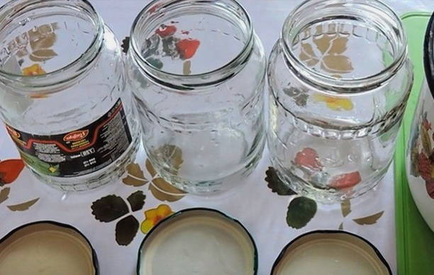- Was potten voor bereiding met zuiveringszout en steriliseer ze op welke manier dan ook. Kook de deksels.