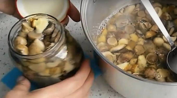 - Verpak hete boletus in voorgesteriliseerde potten.