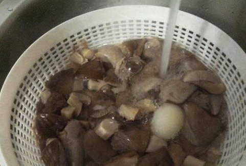 - Gooi de gekookte champignons door een vergiet en spoel ze af met stromend water.