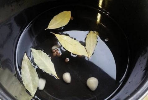 Doe kruiden in de gekookte marinade: peper, kruidnagel en laurier.