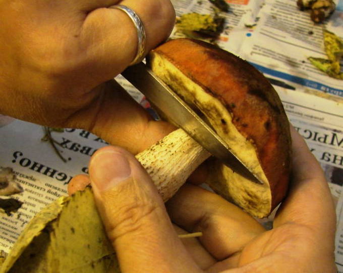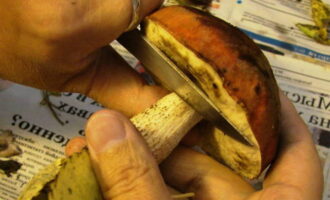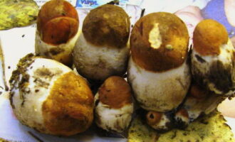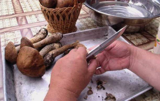 We reinigen de rest van de boletus van besmetting, sorteren het vuil en spoelen grondig.
