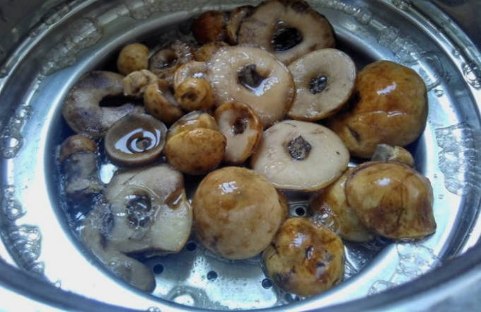 - We sorteren de espenpaddenstoelen, reinigen ze van besmetting, verwijderen de wormachtige vruchtlichamen, spoelen goed in verschillende wateren.