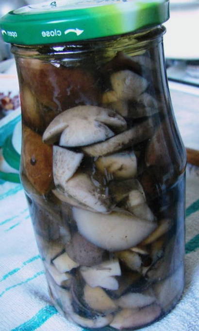 Boletus boletussen behouden perfect hun vorm tijdens het koken, vallen niet uit elkaar. In de pot zijn de plakjes gelijkmatig en helder, de marinade is transparant en schoon - het voorgerecht zal niet alleen verrukken met zijn smaak, maar ook met zijn uiterlijk. We raden aan om jonge paddenstoelen en grote stukken, in stukjes gesneden, in aparte potten te bewaren.