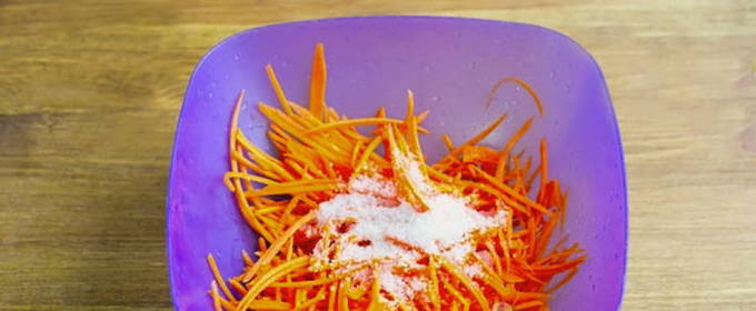 - Schil en rasp de wortelen. Voeg een halve eetlepel zout en een eetlepel suiker toe, roer en plet de wortelen lichtjes om het sap af te tappen.