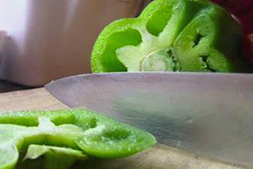 - Was de paprika's, schil ze van zaden en partjes, snijd ze in kleine stukjes.
