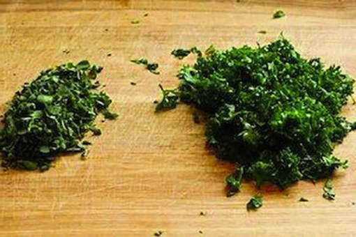 - Hak de knoflook en kruiden fijn.