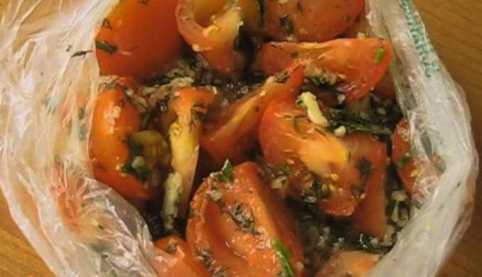 Een instantzak lichtgezouten tomaten is een geweldige snelle snack voor een zomers diner. Een minimum aan ingrediënten en een minimum aan tijd, maar de smaak zal uitstekend zijn.