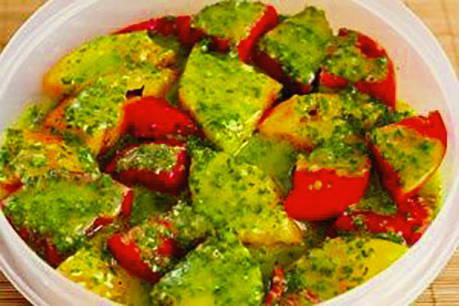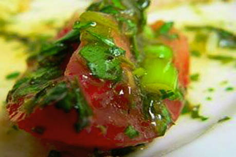 - Tomaten kunnen direct in de marinade geserveerd worden.