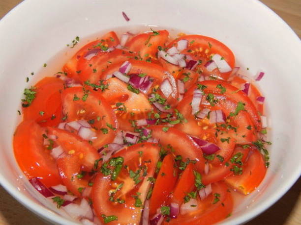 - Huisgemaakte instant tomaten gemarineerd met uien