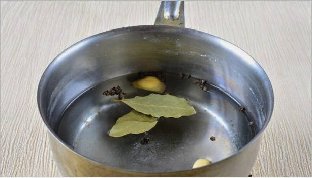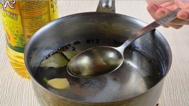 - Giet water, zonnebloemolie in een geschikte pan en voeg zout, suiker, koriander, kruidnagel, peper, knoflook en laurier toe.