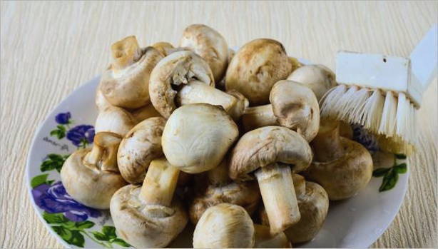 Spoel de champignons grondig onder warm water. Het belangrijkste is dat er geen vuil en vuil in zit.
