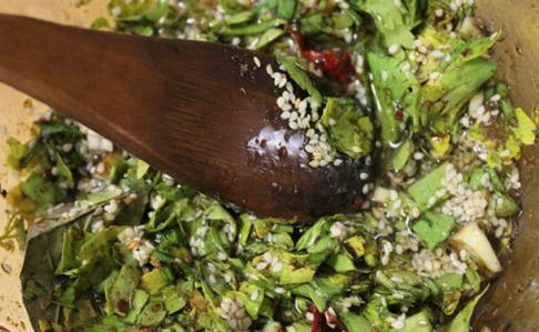 - We sturen gouden sesamzaadjes naar een bijna klaargemaakte marinade en mengen goed.