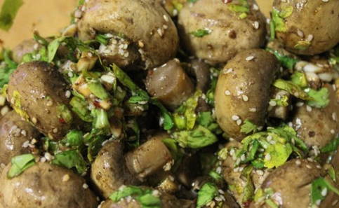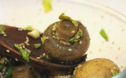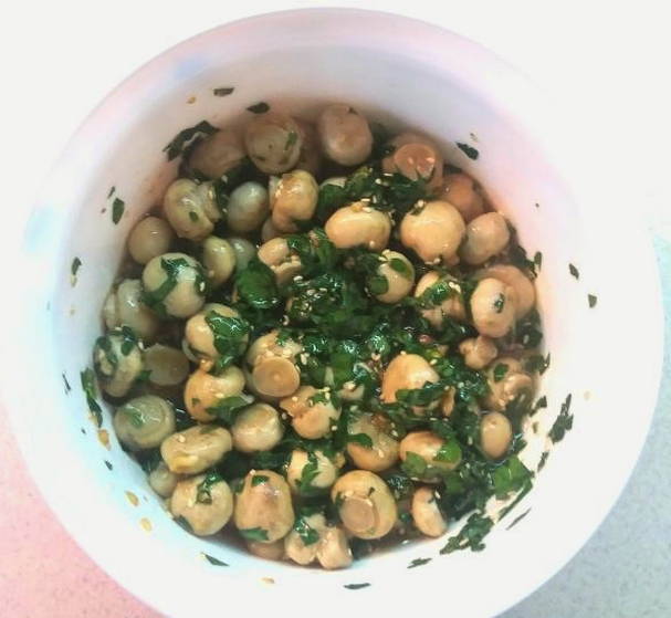 - Geurige champignons gemarineerd in sojasaus met sesamzaadjes
