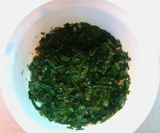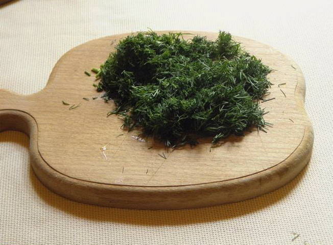 - We wassen de dille onder koud water, drogen hem, verwijderen de stelen en hakken fijn.