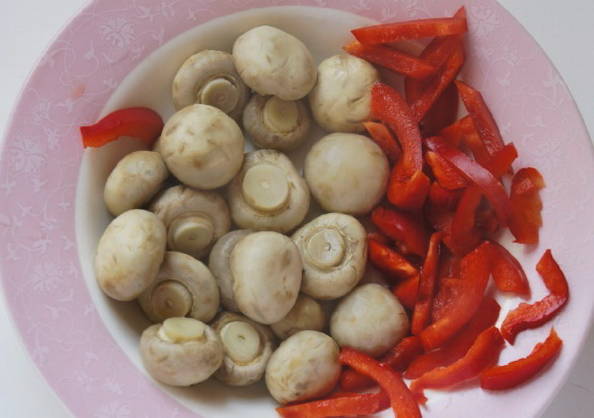 - Spoel de champignons grondig onder warm water en snijd de poten door. Snijd de grotere champignons in 2 delen.