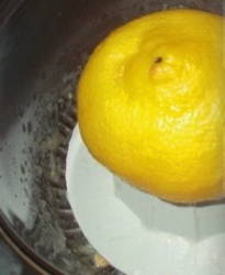 - Giet de citroen over met kokend water en verwijder de schil op een fijne rasp. Dan persen we het sap eruit.