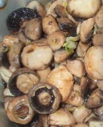 - Voeg champignons toe aan de gekookte marinade en kook alles ongeveer 7-10 minuten.