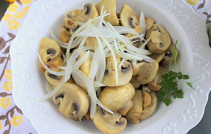 - Hoe champignons met uien thuis te pekelen?