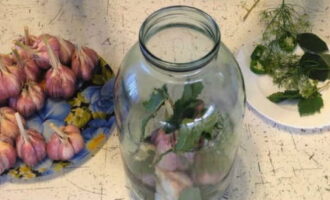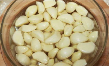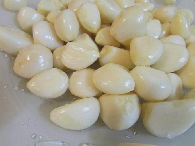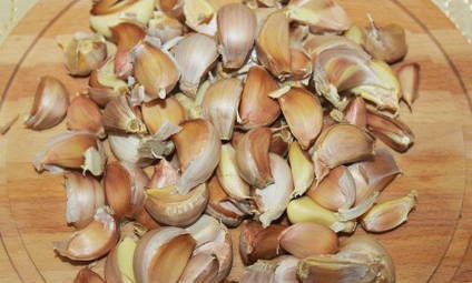 - We reinigen geurige jonge knoflook van alle lagen schil, behalve de allerlaatste. We demonteren grote koppen in helften of vieren - blancheren in kokend water.