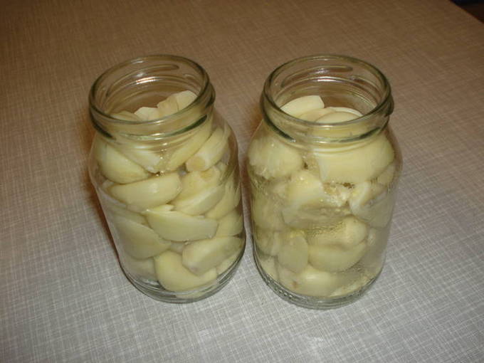 - Leg de teentjes knoflook in de eerste laag op de bodem van schone steriele potten.