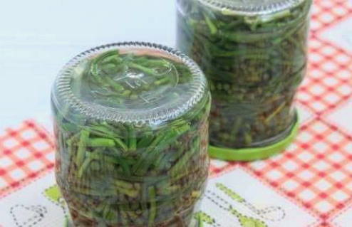 - Ingemaakte knoflookpijlen in het Koreaans voor de winter