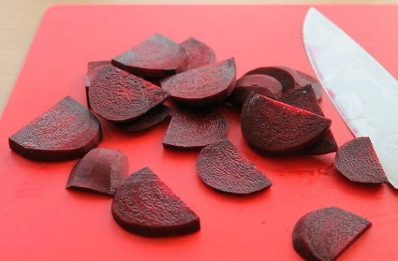 - Snijd de bieten in kleine partjes.