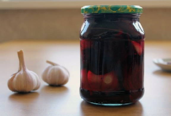 - Ingelegde knoflookkoppen met bieten voor de winter