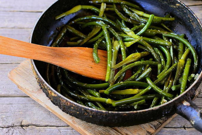 Als je een knoflookoogst hebt, haast je dan niet om sappige aromatische pijlen weg te gooien, want ze kunnen worden gebruikt om een heerlijke snack in Aziatische stijl te maken die goed samengaat met vleesgerechten en perfect fungeert als een frisse toevoeging.