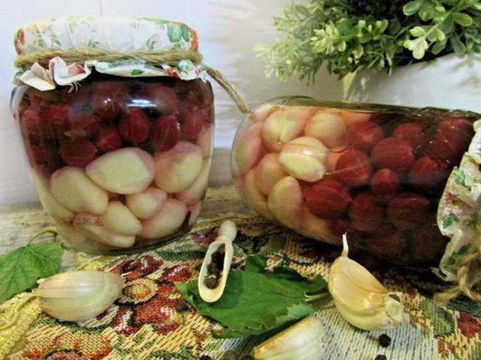 - Ingelegde knoflook met kruisbessen voor de winter