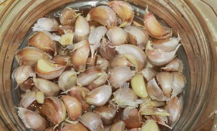 - Breng de geweekte knoflook over naar de container waarin het zal worden gebeitst.