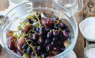 - Scheid de druiven van de takken en spoel ze af onder koud water. Voor het gemak kunt u in een diepe kom weken.