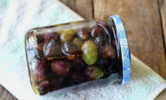 - Giet de druiven met de afgewerkte marinade. We sluiten de pot, laten hem afkoelen en sturen hem naar de opslag.