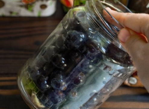 - Doe de gewassen druiven stevig in een pot en vul met marinade. Voeg azijn toe en sluit de blanco met een deksel.