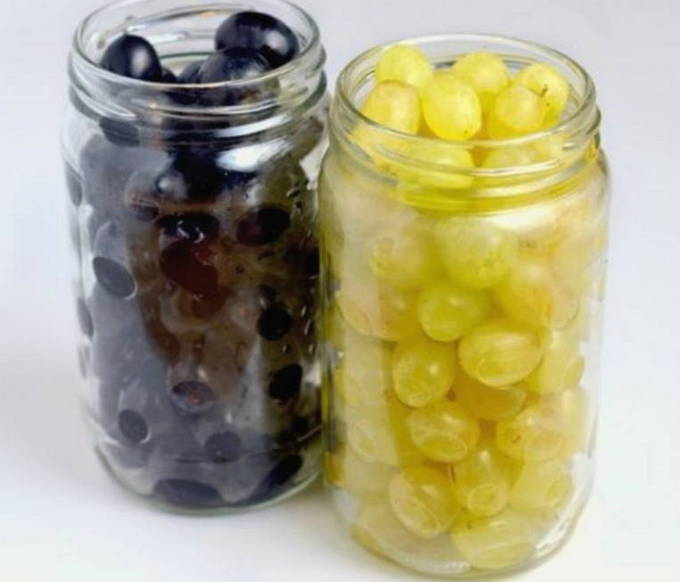 Sappige ingemaakte druiven zullen een fleurige traktatie op tafel worden. Ook kan het product worden gebruikt bij de bereiding van salades en koude snacks. Bekijk dit eenvoudige zelfgemaakte recept voor winteropslag.