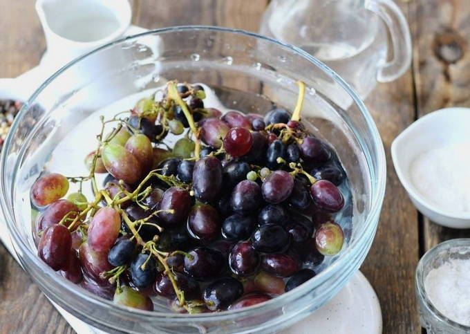 Sappige ingemaakte druiven zullen een fleurige traktatie op tafel worden. Ook kan het product worden gebruikt bij de bereiding van salades en koude snacks. Bekijk dit eenvoudige zelfgemaakte recept voor winteropslag.