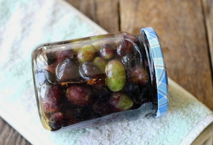 - Na volledig afgekoeld te zijn, zijn de ingelegde druiven helemaal klaar. De traktatie wordt een vrolijk voorgerecht op tafel en doet je denken aan de smaak van echte Italiaanse olijven.
