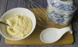 Voor deze saus wordt Franse mosterd gebruikt in plaats van gewone mosterd, wat de smaak van mayonaise pittig en origineel maakt. Het past goed bij vleesdelicatessen en gekookte aardappelen.