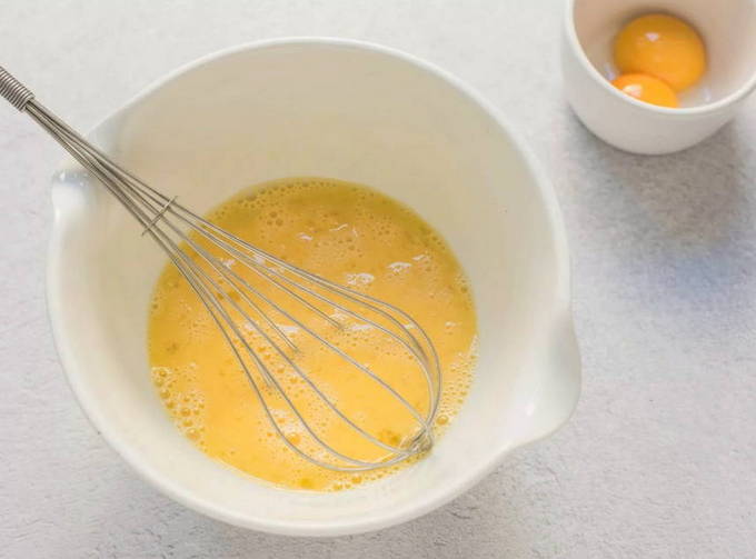 - Alle gebruikte producten moeten eerst in een warme ruimte staan voordat ze worden gekookt, zodat ze niet koud worden. Doe twee verse dooiers in een grote kom.