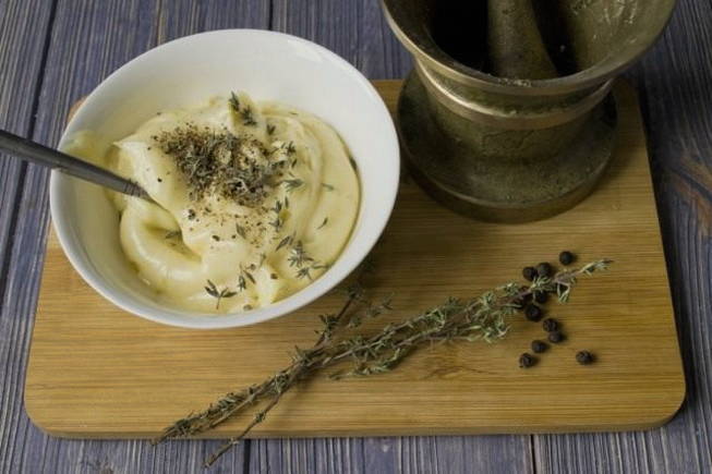 Voor deze saus wordt Franse mosterd gebruikt in plaats van gewone mosterd, wat de smaak van mayonaise pittig en origineel maakt. Het past goed bij vleesdelicatessen en gekookte aardappelen.
