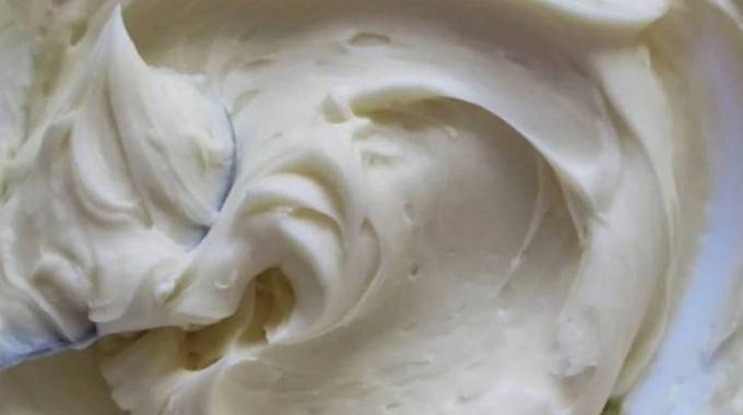 - Klop voor de room de gekoelde room en voeg geleidelijk de gezeefde poedersuiker toe. Verspreid vervolgens wat roomkaas en klop tot een gladde massa. We sturen de afgewerkte room naar de koelkast tot het volgende gebruik.