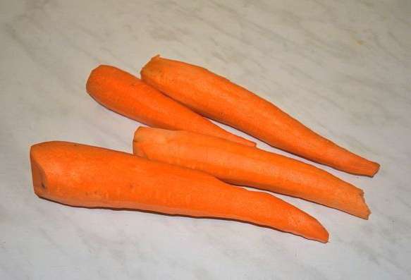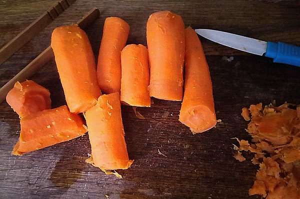- We zullen de nodige producten klaarmaken. Schil de wortelen en spoel ze af.