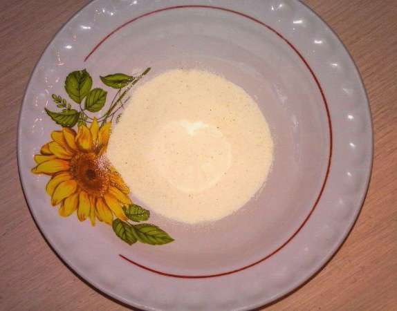 - Giet de benodigde hoeveelheid griesmeel in een diep bord.