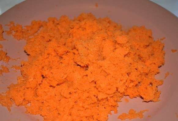 - We spreiden de wortelen in een diepe en gemakkelijk te kneden plaat. We voegen geen suiker toe, omdat de groente zelf de nodige zoete smaak zal geven.