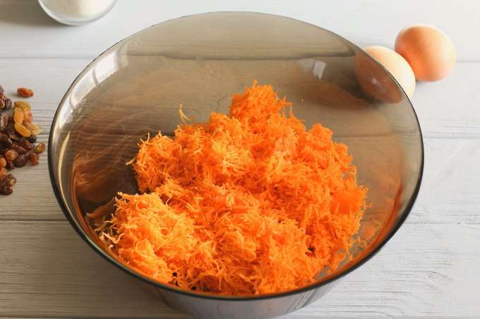 Smakelijke wortelschotel wordt nog helderder en origineler door de toevoeging van rozijnen. Gedroogd fruit geeft het gerecht een speciale smaak en aroma. Serveer een zelfgemaakte lekkernij bij de thee of bij het ontbijt.